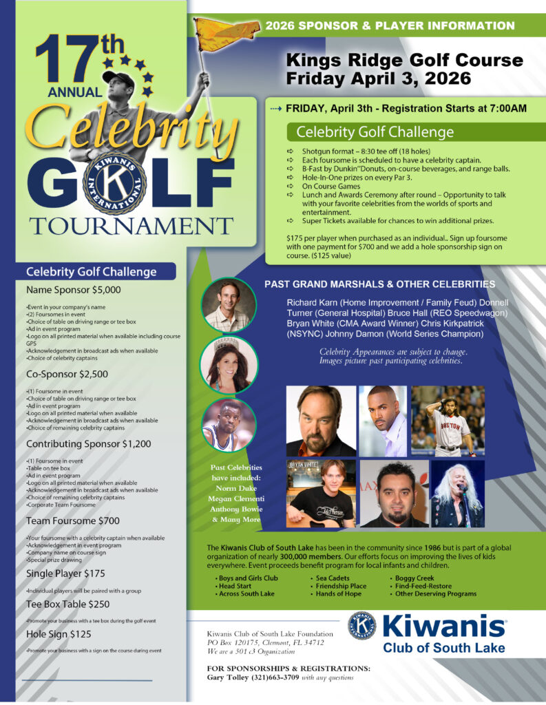 You can also talk with any members of the South Lake Kiwanis Club.